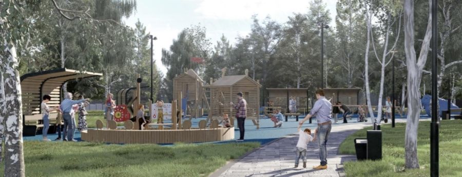 Всю территорию обустроят и озеленят. Здесь проложат дорожки, установят освещение, камеры видеонаблюдения и системы оповещения, построят беседки, перголы, качели с навесами, разместят информационные стенды.