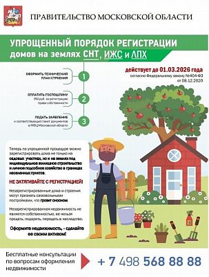 Узнать больше об условиях «дачной амнистии» и порядке регистрации прав можно на сайте Минмособлимущества и по телефону Московского областного БТИ: +7 (498) 568-88-88.