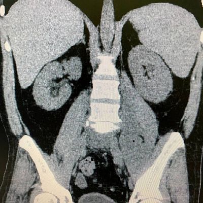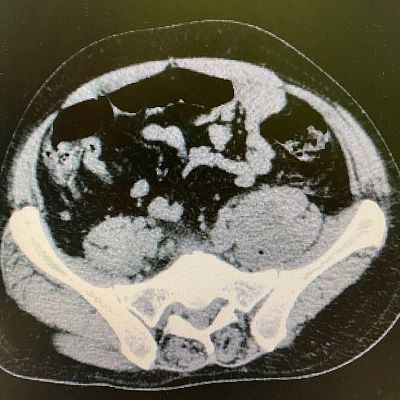 При дообследовании в стационаре выявлены высокие показатели маркеров воспаления, указывающие на септическое состояние пациента, плюс усиливающиеся боли… Дальнейшее обследование мужчина уже проходил в реанимации. По результатам компьютерной томографии у него выявлен ранее перенесенный перелом суставных отростков 4-го поясничного позвонка и абсцесс в структуре правой поясничной мышцы - источник сепсиса установлен. Именно этот абсцесс доставлял пациенту столько страданий и даже мешал лежать на спине.