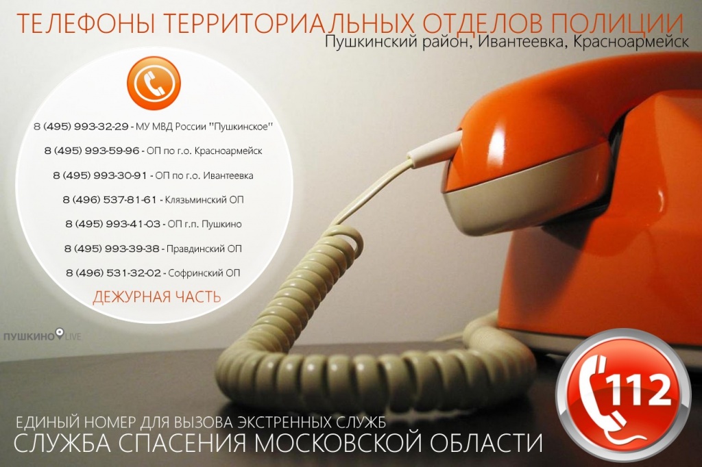 МУ МВД России "Пушкинское" обращается ко всем жителям района с просьбой незамедлительно информировать органы внутренних дел в случае возникновения чрезвычайных ситуаций, нарушений общественного порядка, обнаружения бесхозных сумок, пакетов, а также выявления административных правонарушений или преступлений.