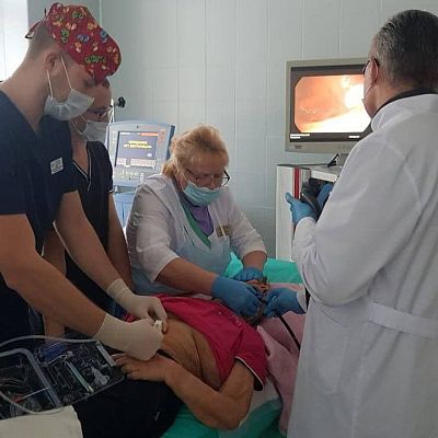 Во всех медицинских учреждениях, куда ранее неоднократно обращалась пациентка, в помощи было отказано со ссылкой на неизлечимость заболевания и возможность летальных осложнений. Наши врачи, осмотрев пациентку, пошли на оправданный риск и госпитализировали ее. В связи с нарушением глоточных функций и кахексией, операция под общим наркозом представляла опасность в виду высокого риска развития осложнений на фоне искусственной вентиляции легких. Чтобы сократить риски, было принято решение о выполнении миниинвазивного вмешательства, а именно пункционной эндоскопической гастростомии, что позволяло выполнить операцию под местной инфильтрационной анестезией.