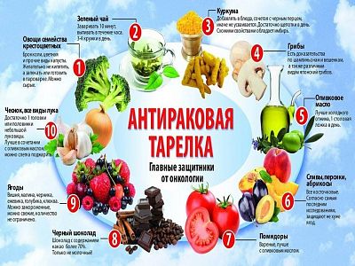 Большое значение придают витаминам А, С и группы В. Витамин А и каротиноиды препятствуют накоплению канцерогенов в организме и уменьшают их воздействие на клетки. Витамин С обладает антиоксидантными свойствами, стимулирует показатели иммунитета.