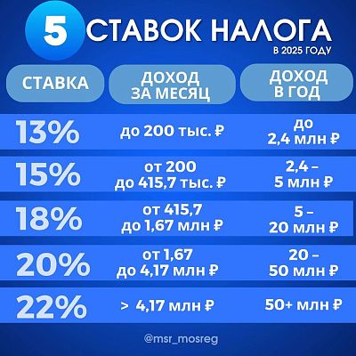 Например, если вы зарабатываете 5 млн руб. в год, то для вас будут действовать две ставки налога на протяжении года: