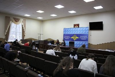 Ребята ознакомились с навыками и качествами, которыми должен обладать абитуриент для поступления в высшие учебные заведения МВД России и дальнейшей работы в органах внутренних дел. Также студентам был показан ознакомительный фильм о Московском университете МВД России имени В.Я. Кикотя.