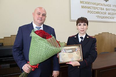 Приказом начальника МУ МВД России «Пушкинское» за добросовестное исполнение служебных обязанностей, достигнутые результаты в профессиональной деятельности были вручены Почетные грамоты, Благодарности и Благодарственные письма родителям.
